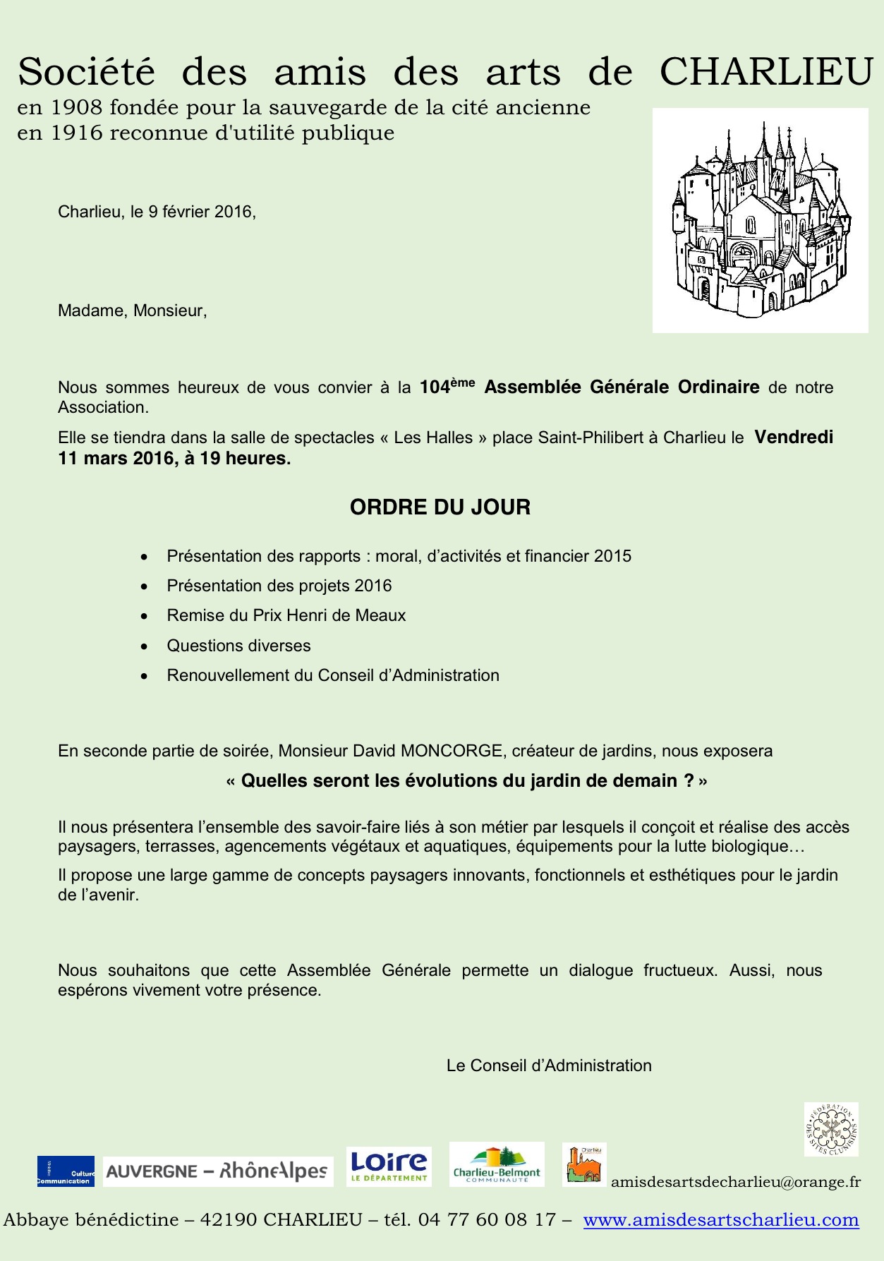 L'assemblée générale de l'association se tiendra le 11 mars 2016, à 19 heures.