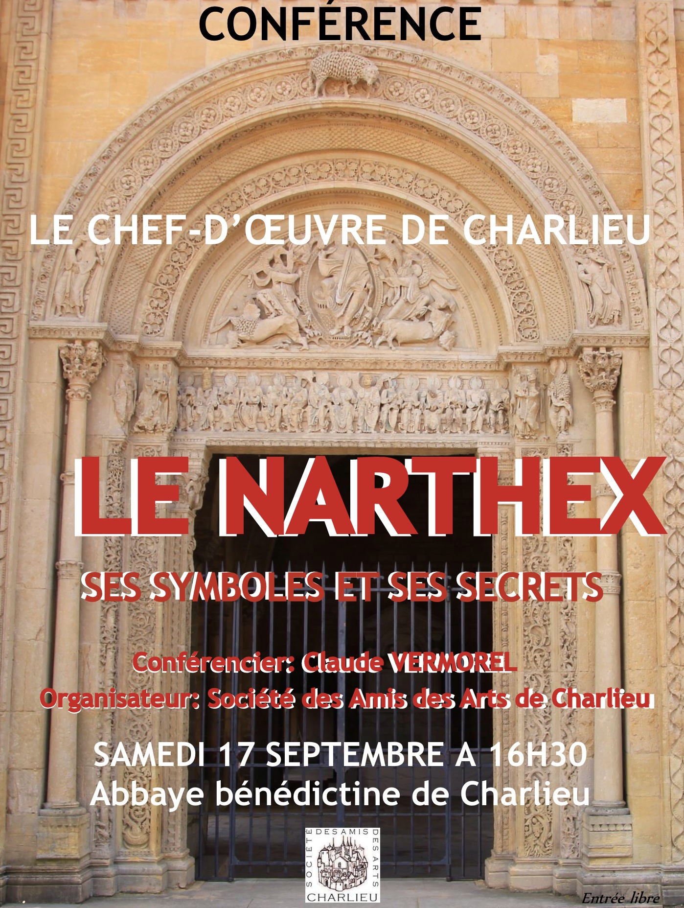 Le chef-d'œuvre de Charlieu : le narthex, ses symboles et ses secrets, le samedi 17 septembre à 16 heures 30, abbaye bénédictine.